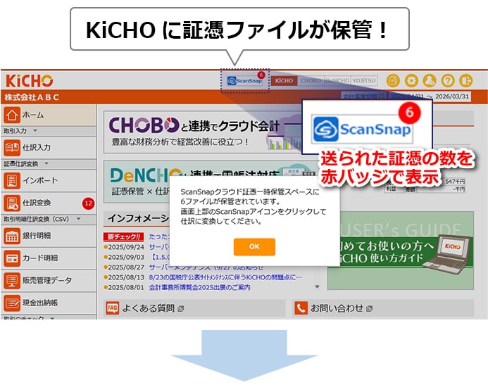 今回のバージョンアップでKiCHOにScanSnap Cloudとの連携機能をご用意しました。
