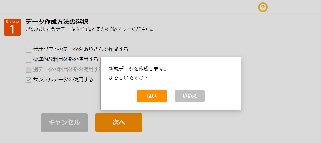 ②データ作成方法のサンプルデータを使用する にチェックを入れて次へをクリック