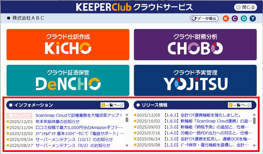 • KiCHO、CHOBO、DeNCHOのホーム画面に「リリース情報」を表示するようになりました。