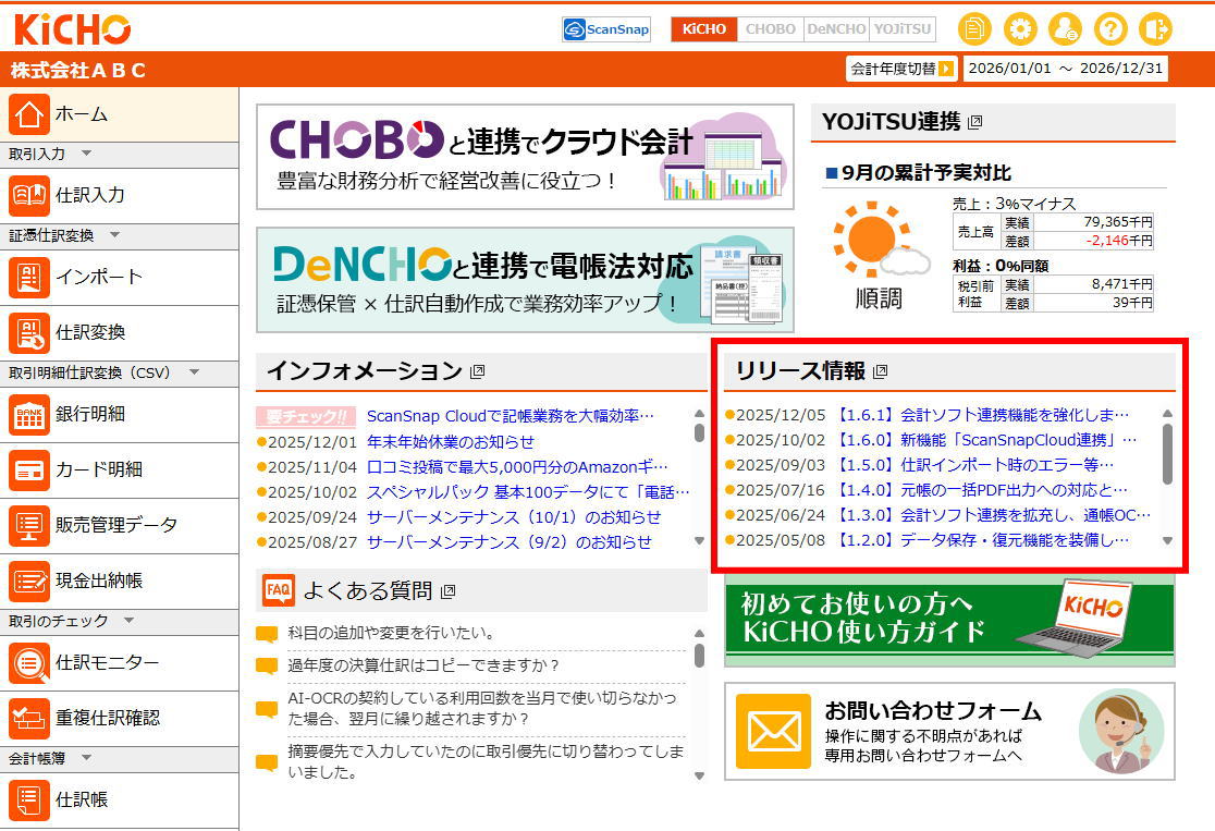 【1.7.0】CSV出力、1年未満会計期間対応等の機能強化を実施しました。
