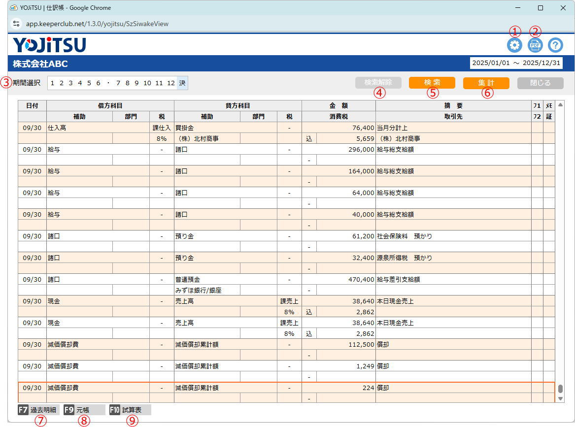 『YOJiTSU』に取り込んだすべての仕訳を日付順に表示します。