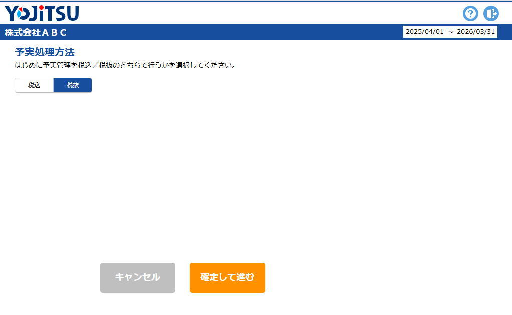 予実管理を税込/税抜のどちらで行うかを選択します。