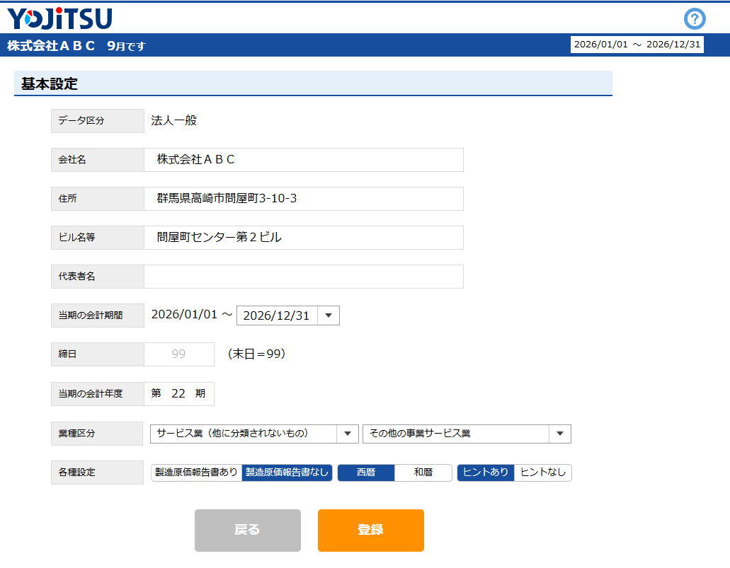 YOJiTSUで予算実績管理を行う会社の情報を登録します。