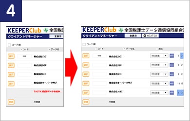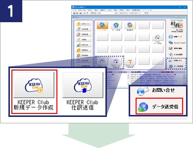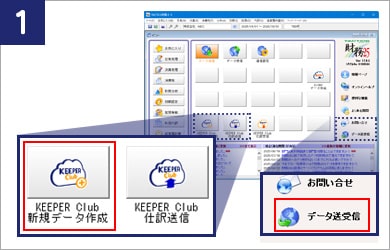 TACTiCS財務の「データ送受信」から「KEEPER Club新規データ作成」をクリック