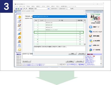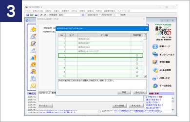 TACTiCS財務ならAPI連携で摘要辞書、取引先辞書、取引明細ファイルのインポートのパターンなどをKEEPER Clubに移行した状態でデータ作成が完了します。